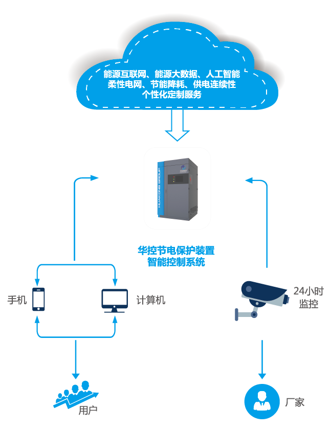 华控节电保护装置智能控制系统整合多项远程控制技术及云端控制技术,实现智能设备管理,实时数据记录,分析助力掌握设备动态,秒级实时设备状态上报,升级全链条打点数据采集,设备级的精细化升级状态追踪,支持设备管理及决策,可实现云端实时查询及监控。全新设备显示屏界面,操作更便捷,响应更迅速。